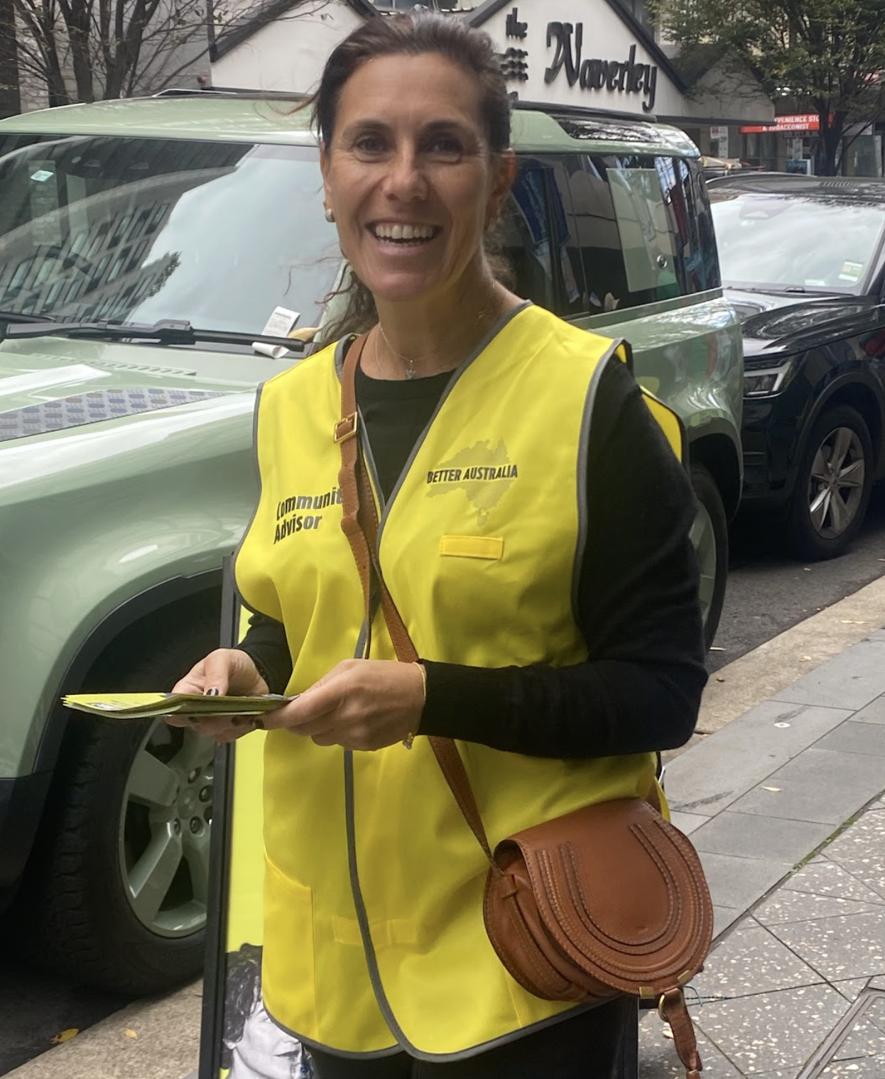 Liberal candidate for Wentworth, Ro Knox, complies with Better Australia’s call to put Greens last on her voting preferences.