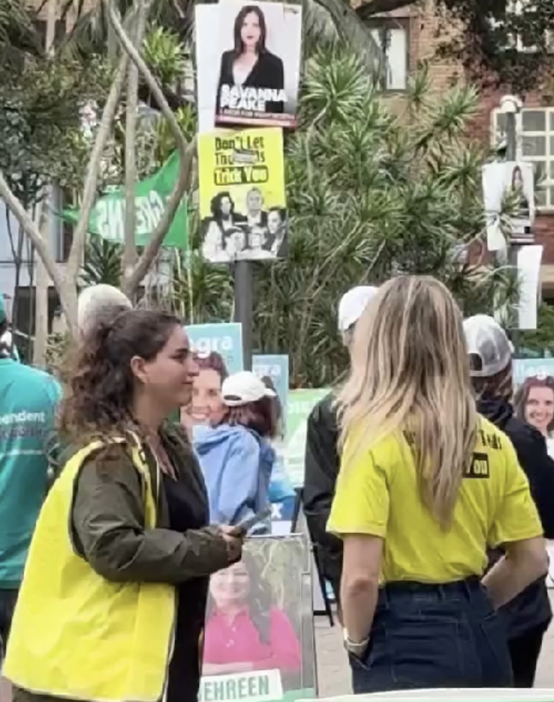 MWM later interviewed this woman who is an Israeli on a working holiday visa. She was supporting the campaign because it fits her political “vision”: the Greens and independent MPs like Allegra Spender must be removed from office because they are “against Israel” and for a “Free Palestine” which would mean the end of “my country”.