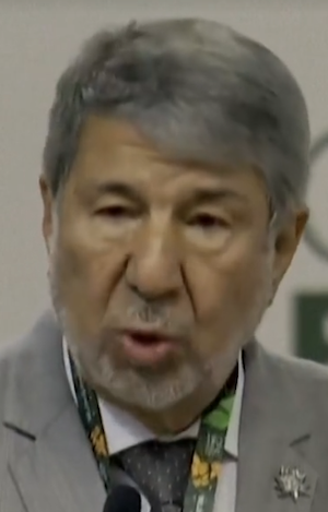 Palestinian Ambassador to Brazil Ibrahim al-Zeben at COP30 . . . “the deliberate destruction of sewage and water networks has led to the contamination of groundwater and coastal waters.” Image: SBS TikTok screenshot APR