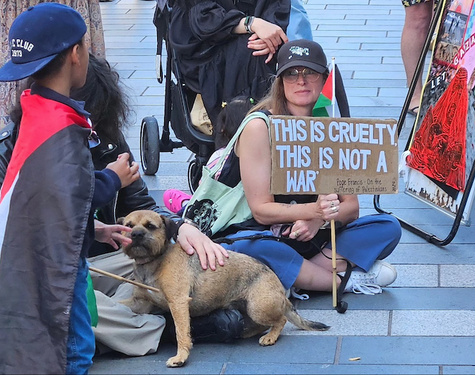 About 30 other protests are happening across New Zealand this weekend over the Gaza genocide.