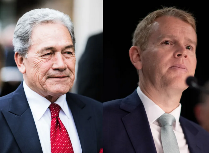 NZ First leader Winston Peters (left) and Labour leader Chris Hipkins
