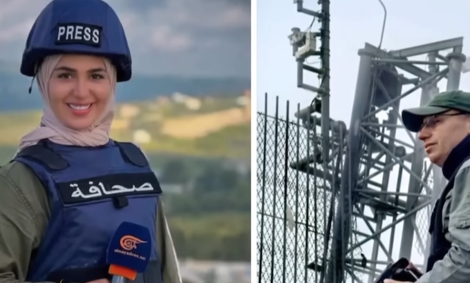 Two of the three latest Lebanese journalists assassinated by Israel . . . Fatemeh Fatouni (left) a reporter for Mayadeen TV; her younger brother Mohamed (not shown), a cameraman; and Ali Shuaib (right) a correspondent for Al Manar. Image: Al Jazeera screenshot APR