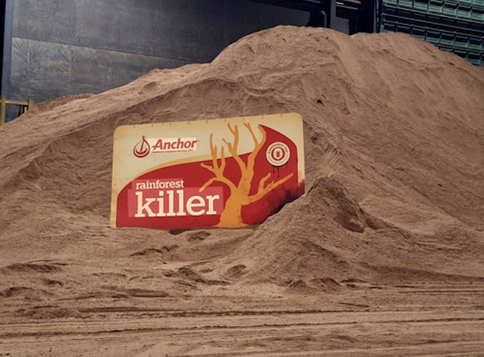 We want the dairy industry to cut out palm kernel, and we want New Zealand consumers to know that Fonterra’s dairy products are driving rainforest destruction.